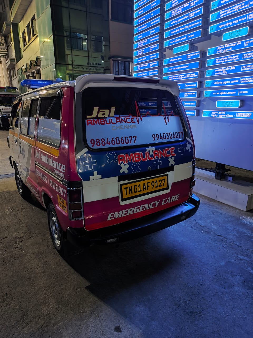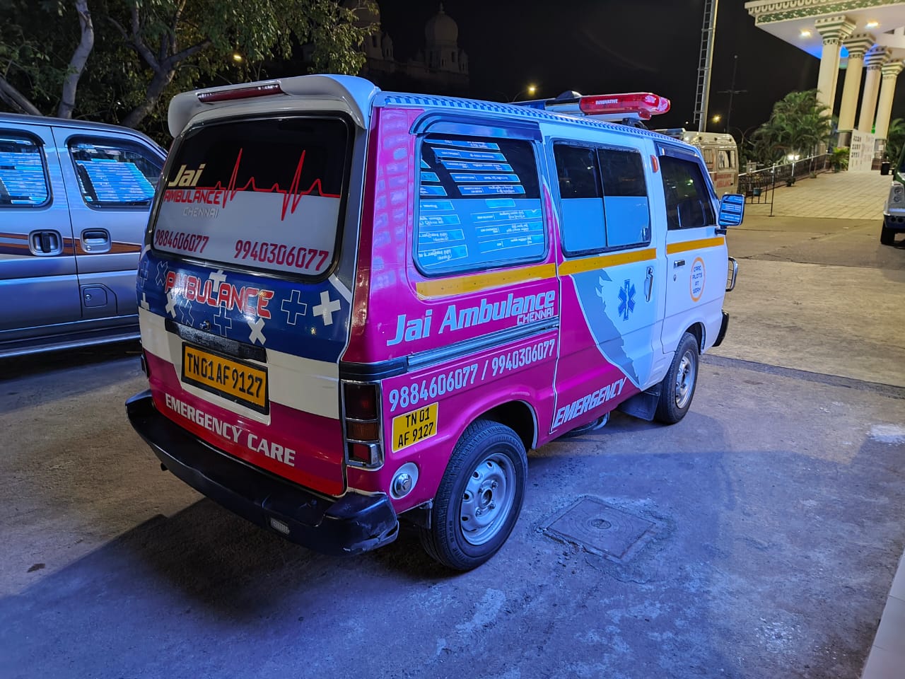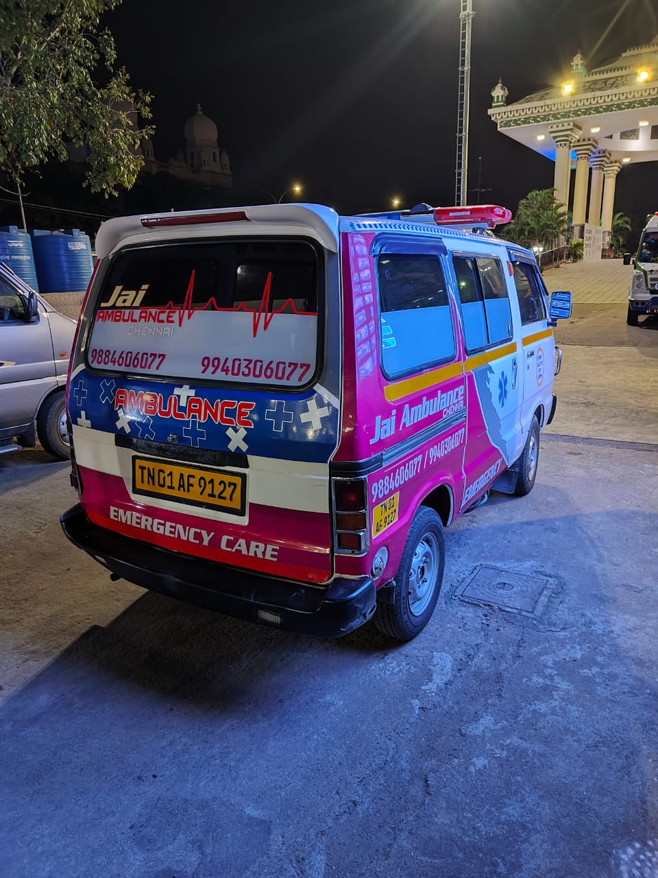 Jai Life Squad Ambulance is a trusted 24/7 emergency ambulance service provider in Chennai, dedicated to saving lives with fast response and professional care. We understand that every second matters during medical emergencies, and our trained team is always ready to serve patients with safety, compassion, and responsibility. We offer a wide range of ambulance services including ICU Ambulance, Oxygen Supported Ambulance, AC & Non-AC Ambulance, Dead Body Freezer Box, and complete Funeral Service Support. Our vehicles are well-equipped with modern medical facilities to handle critical situations during patient transport. With years of experience in emergency medical transport, Jai & Co Ambulance has earned the trust of hospitals, families, and communities across Chennai. Our goal is to provide dependable, affordable, and prompt ambulance services whenever you need us.