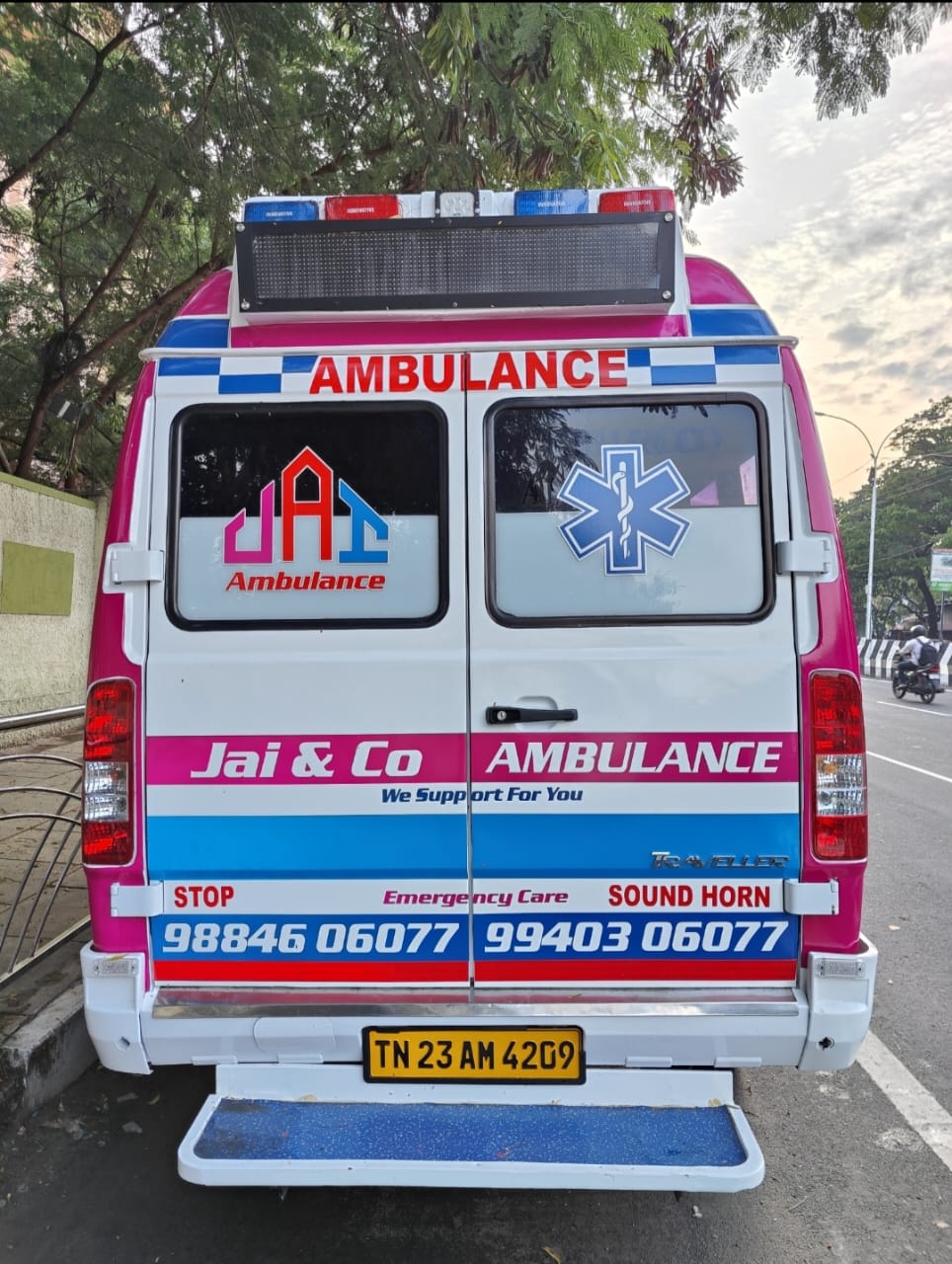 Jai Life Squad Ambulance is a trusted 24/7 emergency ambulance service provider in Chennai, dedicated to saving lives with fast response and professional care. We understand that every second matters during medical emergencies, and our trained team is always ready to serve patients with safety, compassion, and responsibility. We offer a wide range of ambulance services including ICU Ambulance, Oxygen Supported Ambulance, AC & Non-AC Ambulance, Dead Body Freezer Box, and complete Funeral Service Support. Our vehicles are well-equipped with modern medical facilities to handle critical situations during patient transport. With years of experience in emergency medical transport, Jai & Co Ambulance has earned the trust of hospitals, families, and communities across Chennai. Our goal is to provide dependable, affordable, and prompt ambulance services whenever you need us.